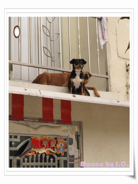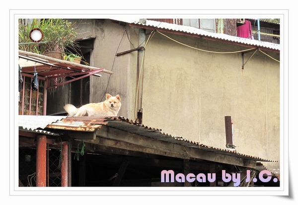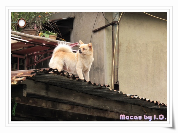 上次去澳門,發現屋頂原來不全是貓所專有的地盤,原來澳門的狗狗也超愛站在屋頂上往下對人看或對人吠呢~~